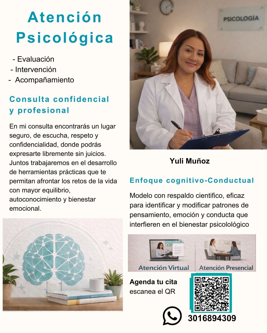 Mi práctica profesional se fundamenta en el modelo cognitivo-conductual, enfoque basado en evidencia científica que permite identificar y modificar patrones de pensamiento, emoción y conducta que interfieren en el funcionamiento personal, familiar y social.